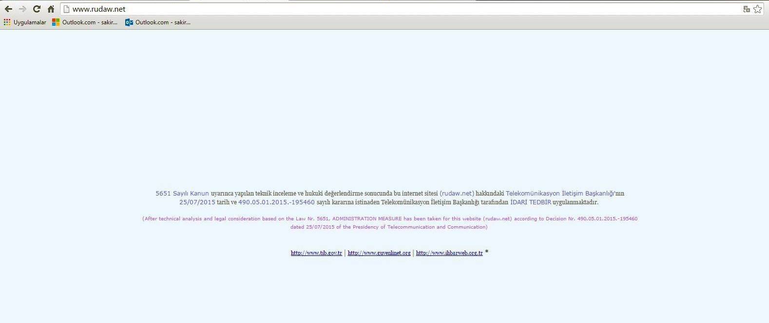 Rudaw digital portal, Bas News and Firat News, which have been blocked since Saturday morning, are covering regional events including Turkey-PKK clashes and Kurdish issue in Turkey.
