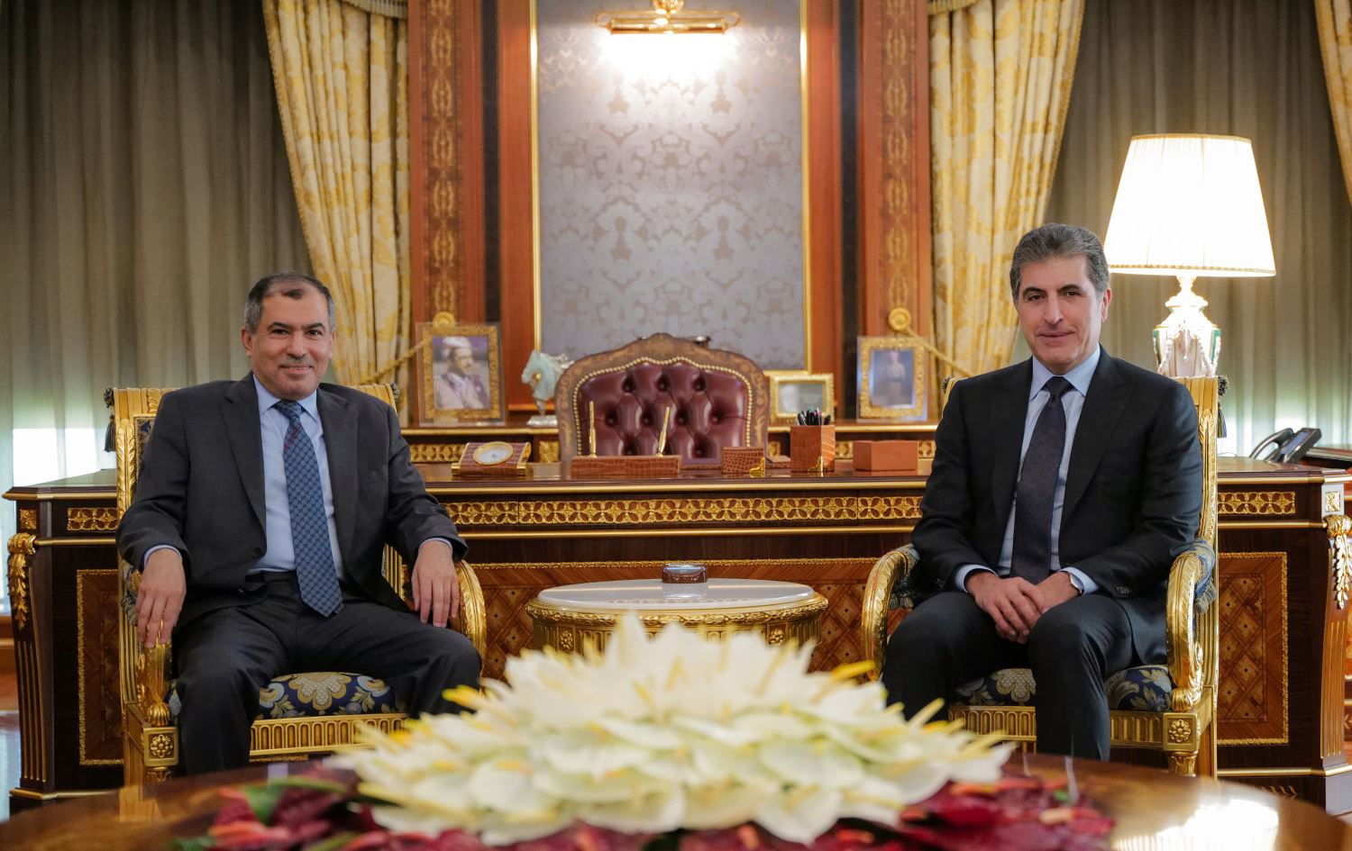 Kurdistan Region President Nechirvan Barzani (right) and Kuwaiti Ambassador to Iraq Hassan Mohammed Zaman (left) meeting in Erbil on August 24, 2025. Photo: Kurdistan Region Presidency