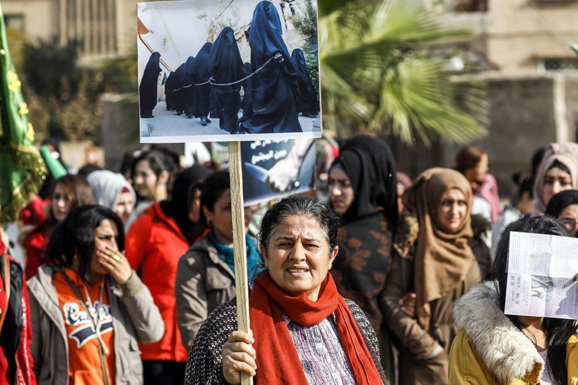 QAMISHLI, Syria – Hundreds of female protesters took to the streets of the Syrian Kurdish-majority city of Qamishli on Sunday to call for an end to violence against women.