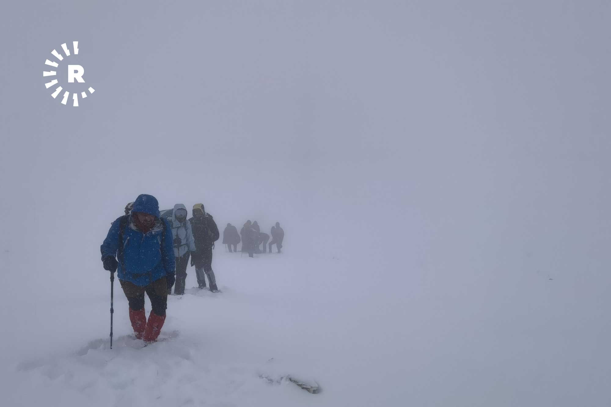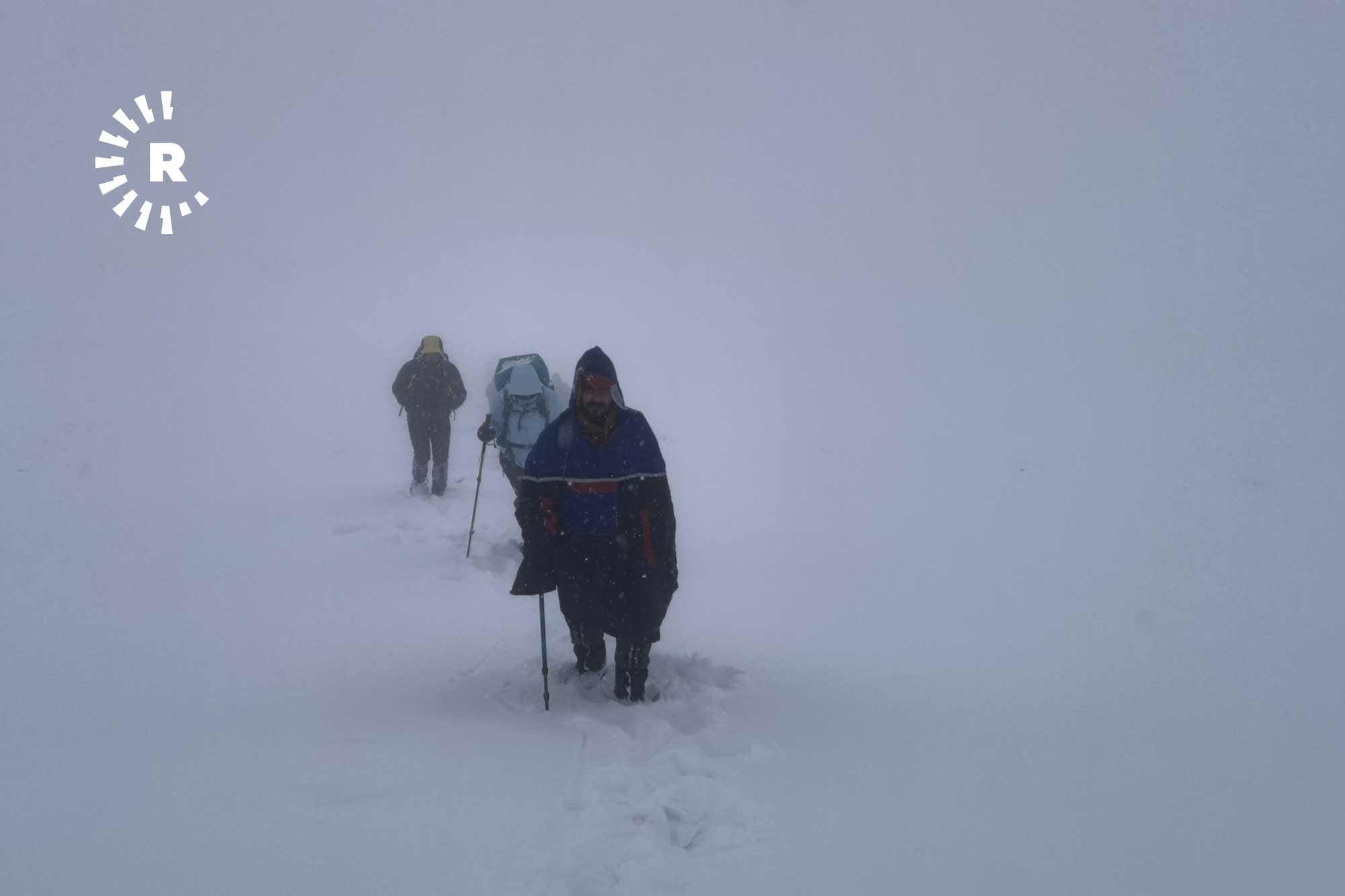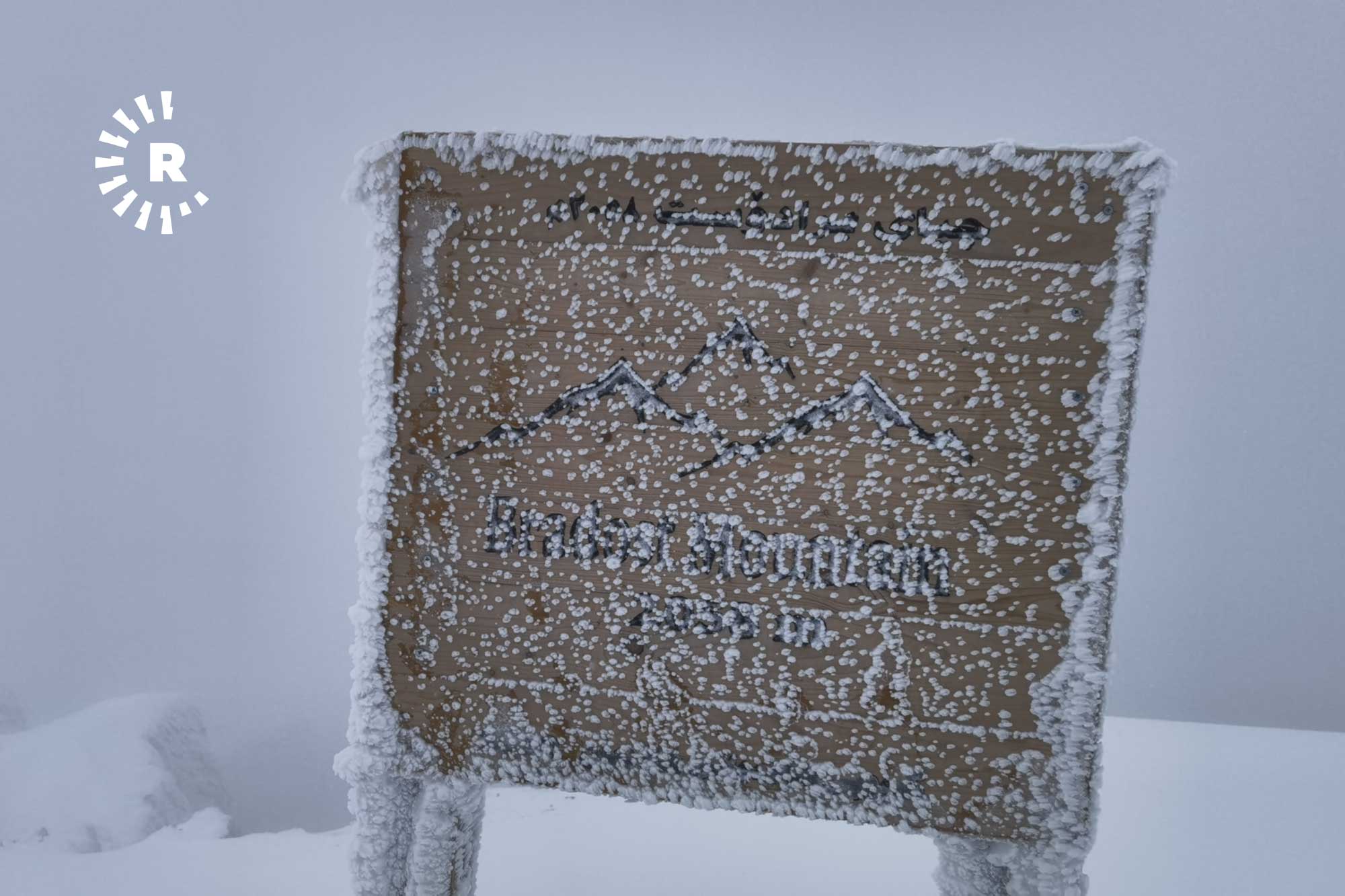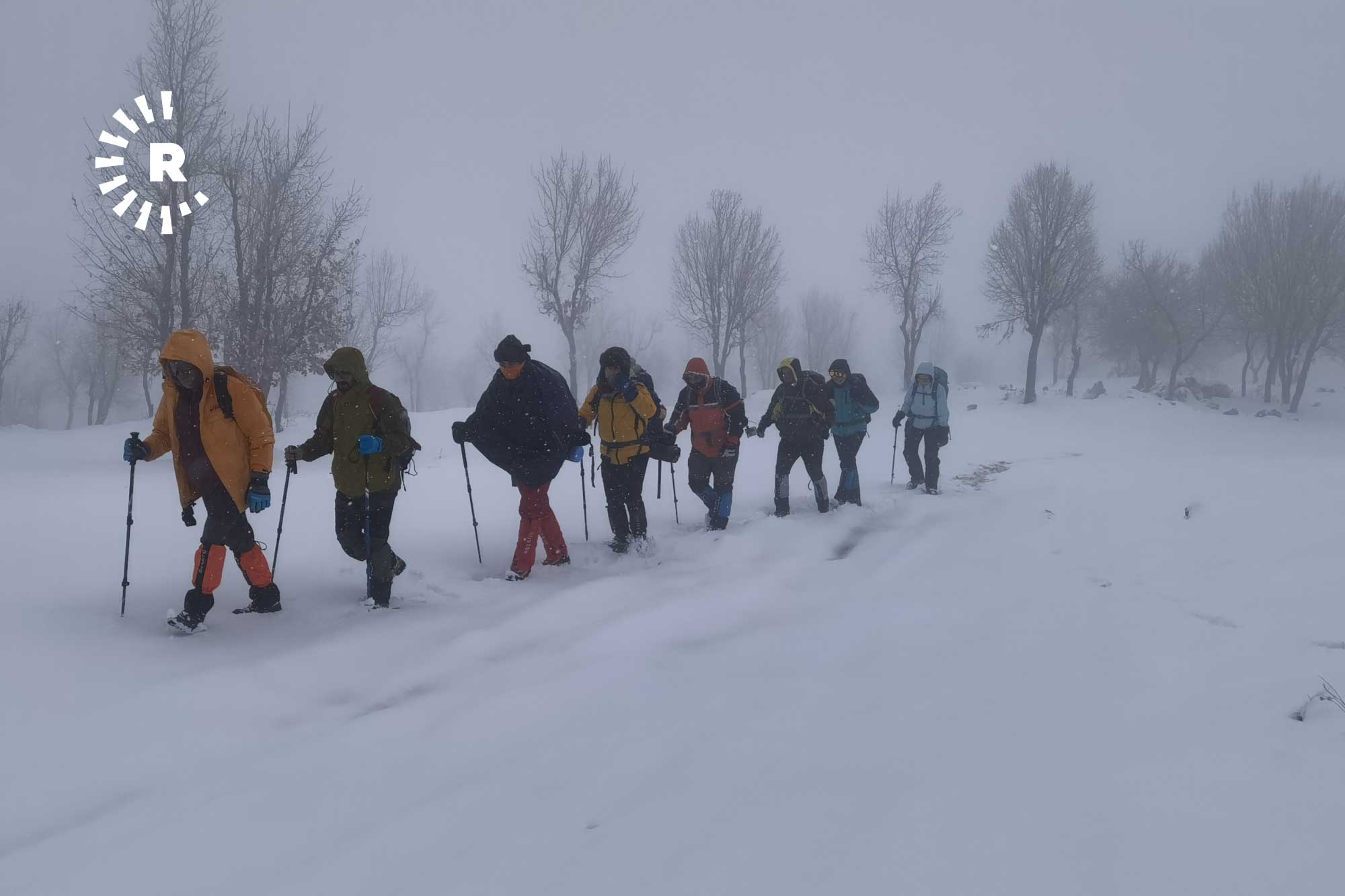 Around a dozen hikers from an environmental organization made a trip to the peak of Mount Bradost in Erbil province on Friday as a blizzard raged around them.
