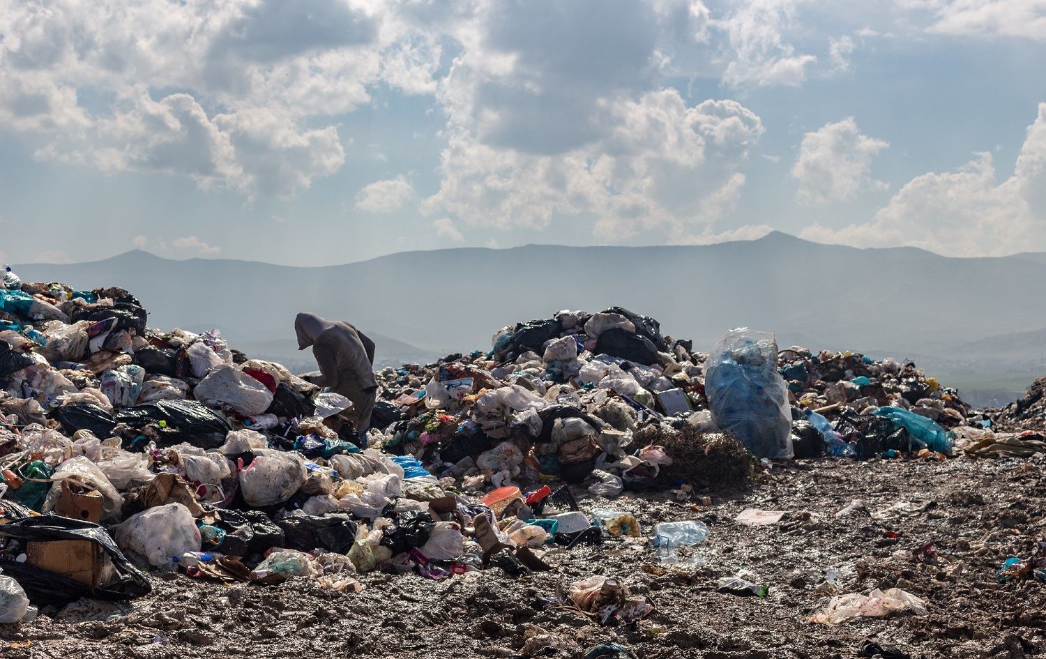 A worker looks for items to salvage and sell from the garbage of Sulaimani city, dumped at a site on the bank of the Tanjero River, south of the city, February 22, 2020. Photo: Hannah Lynch