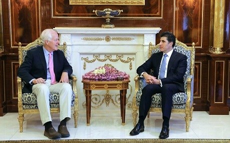 The Kurdistan Regional Government (KRG) Premier Nechirvan Barzani received a US delegation headed by Texas Senator John Cornyn on Friday. The upcoming battle of Mosul, an anticipated wave of internally displaced persons (IDPs), and relations between Erbil and Baghdad were the main topics of the meeting.