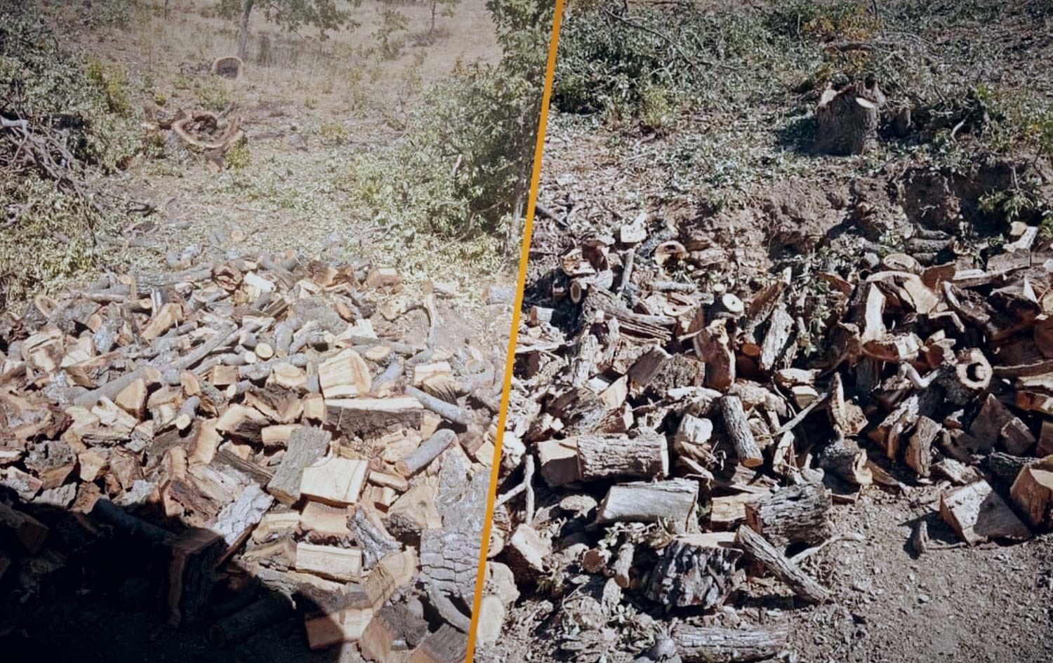 Trees allegedly cut down by Turkey in Hirore village pictured on October 24, 2021. Photo: submitted. Graphic: Rudaw