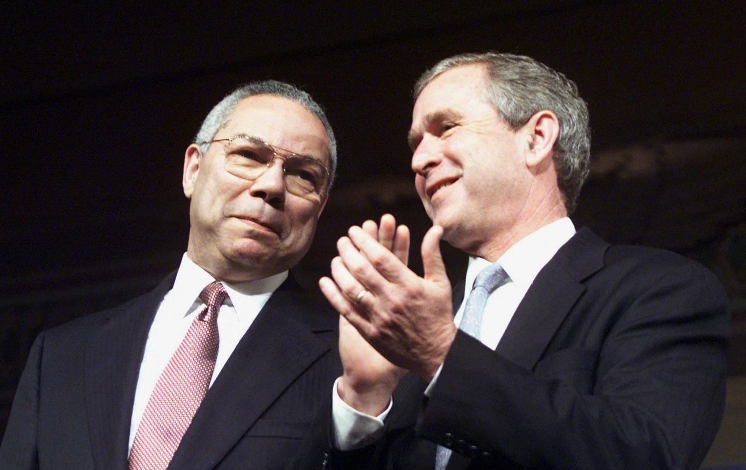 Former US President and then Governor of Texas George W. Bush (right) and General Colin Powell (left) pictured on October 26, 2000. File photo: Paul Buck/AFP