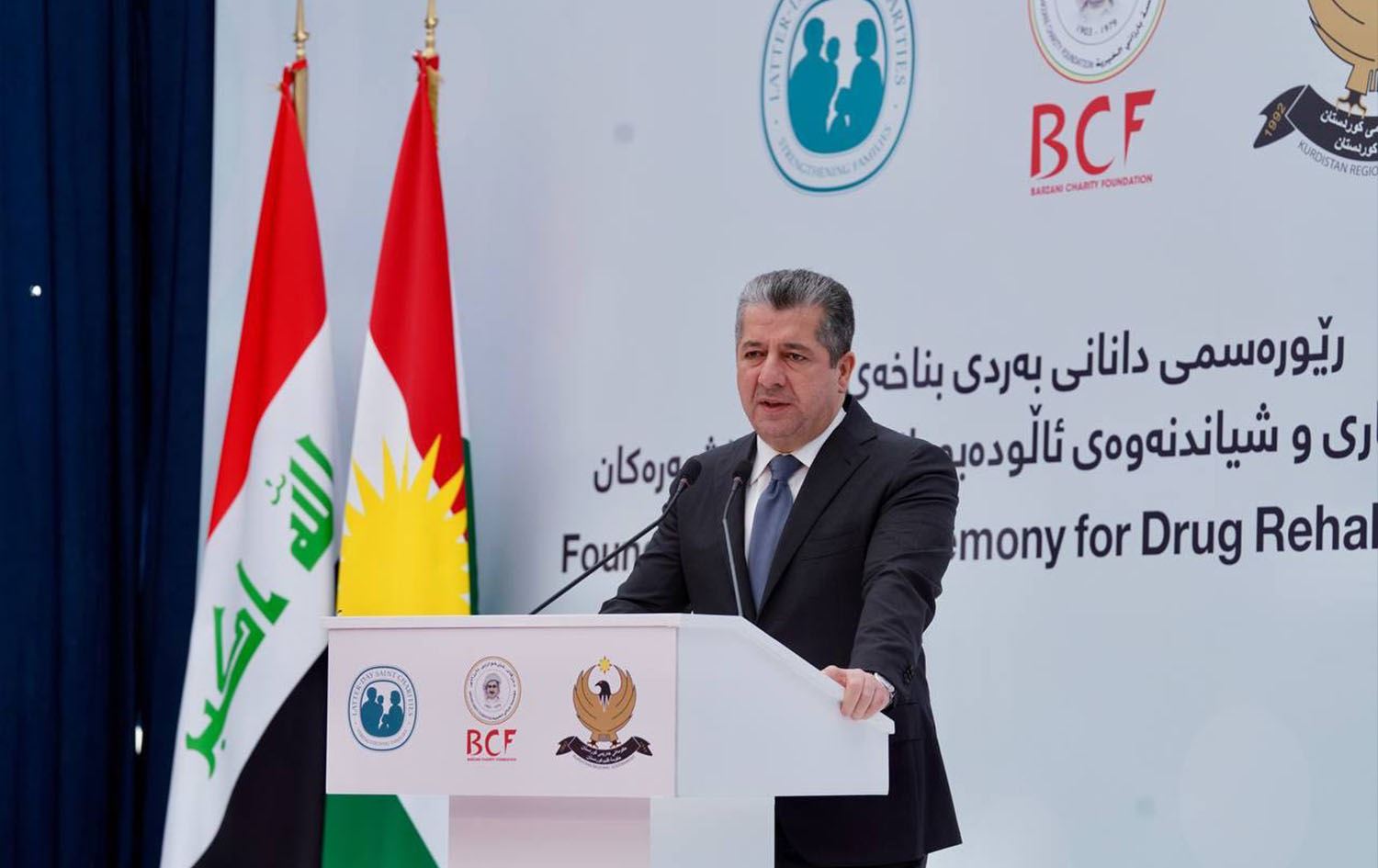 ERBIL, Kurdistan Region - Kurdistan Region Prime Minister Masrour Barzani on Tuesday laid the foundation for a drug addiction rehabilitation center in Erbil and expressed concern about the widespread use of substances in the Region.