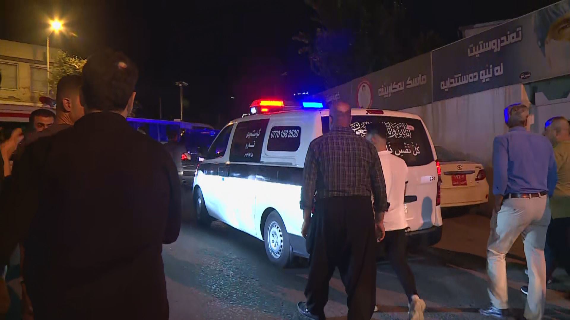 A vehicle carrying the body of a 27-year-old tea-seller, who was shot dead in Sulaimani's Raparin, makes its way from a forensics lab to a graveyard for burial processions on July 27, 2024. Photo: Rudaw/screengrab