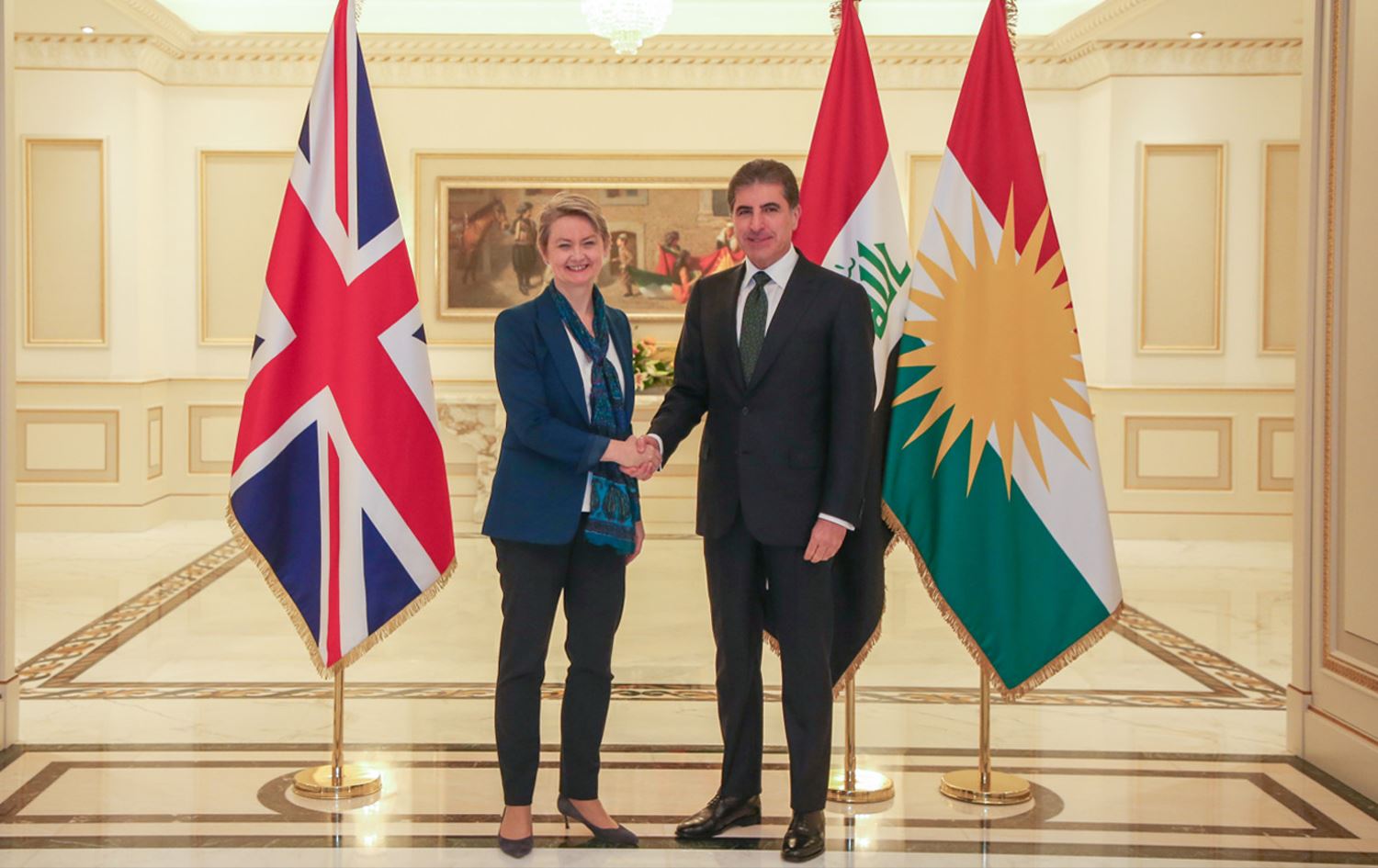ERBIL, Kurdistan Region - Kurdistan Region President Nechirvan Barzani on Wednesday received British home secretary Yvette Cooper in Erbil, discussing bilateral cooperation, and efforts to strengthen regional security.