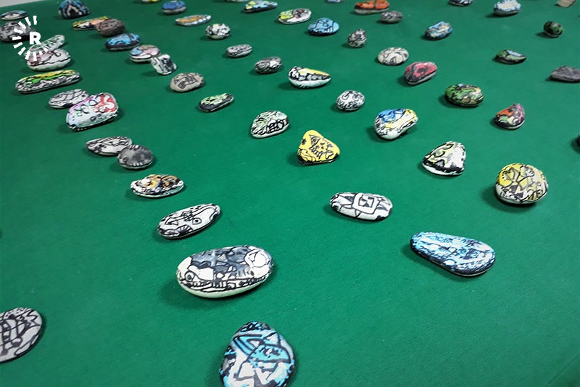 In the midst of conflict, Khayat went to the center of one of the heaviest areas of bloodshed and painted rocks, trees, bullets and any other objects he could find in bright colors, inscribing the words “Peace for Kurdistan” in Kurdish, Arabic and English.