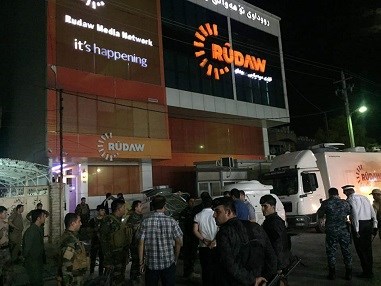 ERBIL, Kurdistan Region – Two men were arrested late last night and charged with carrying out the attack on the Rudaw building in Erbil which wounded five people on Friday, a security source in Erbil said on Tuesday.
