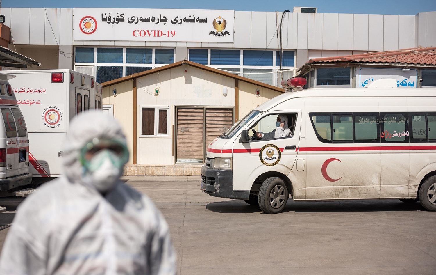 A health worker walks outside an Erbil coronavirus treatment centre. File photo: Bilind T. Abdullah/Rudaw