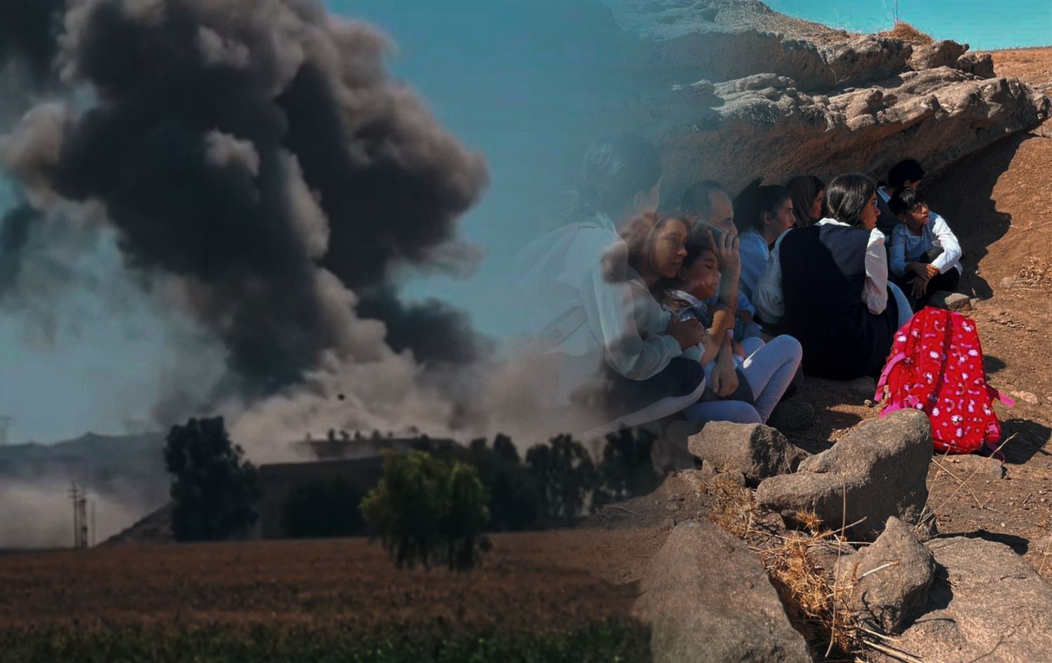 Iran’s strikes near Kirkuk’s Pirde and school children seek shelter after Iran’s attack on Koya on September 28, 2022. Photos: Rudaw/submitted. Graphic: Rudaw