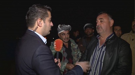 Fakhir Ismail, evicted from his house on Wednesday, speaks to a Rudaw reporter in a village in Dubiz, west of Kirkuk.