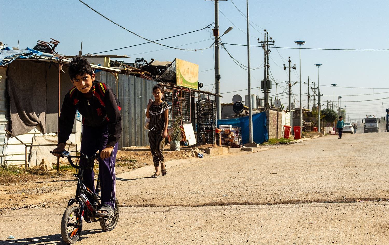 A Syrian boy rides a bike in Domiz refugee camp in the Kurdistan Region’s Duhok province, October 16, 2019. Photo: Hannah Lynch / Rudaw