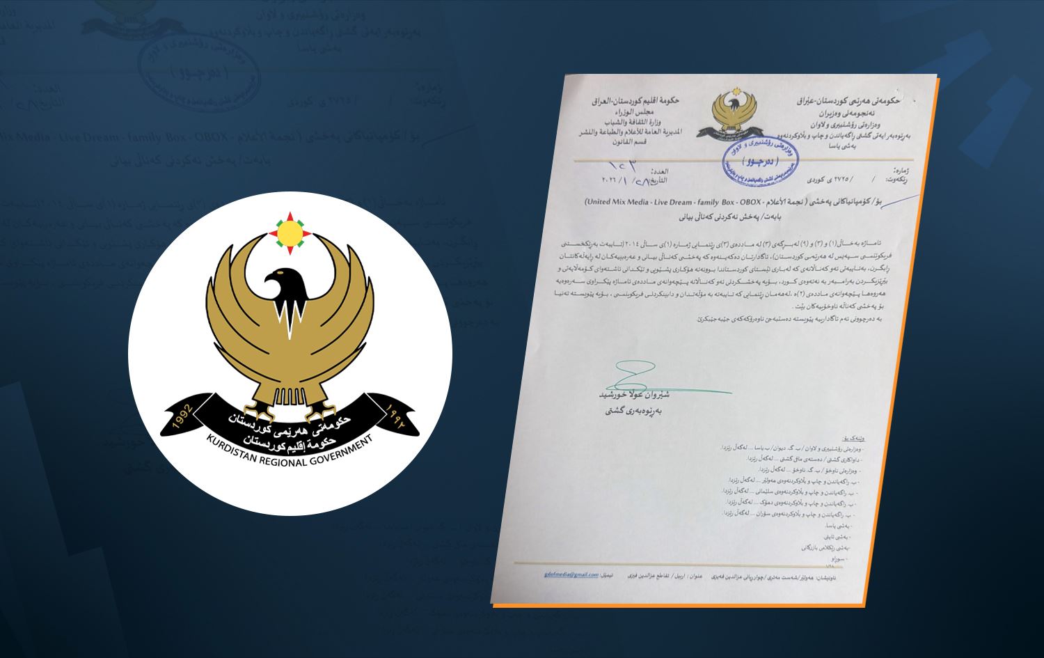 Logo of the Kurdistan Regional Government (KRG) along with the letter posted by the its culture ministry. Graphic: Rudaw