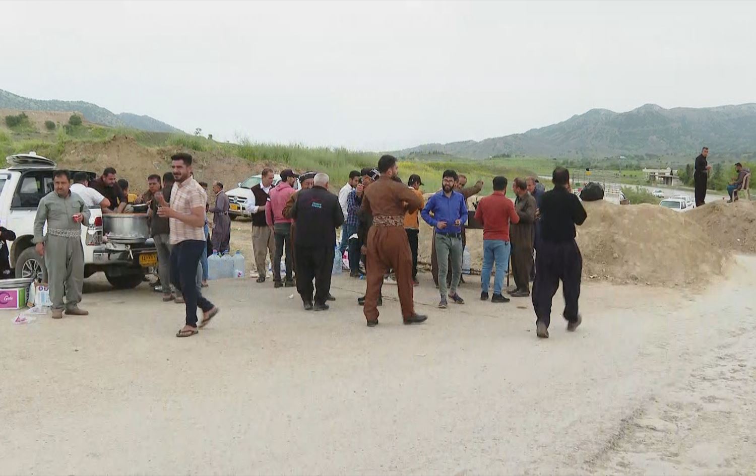 Residents of 20 villages in Smaquli valley block the road linking Erbil and Sulaimani for the fourth consecutive day on April 29, 2023. Photo: Rudaw