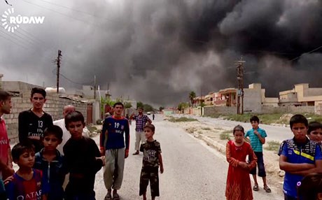 Many people have evacuated their houses in Qayyara to avoid the risk from the fires.