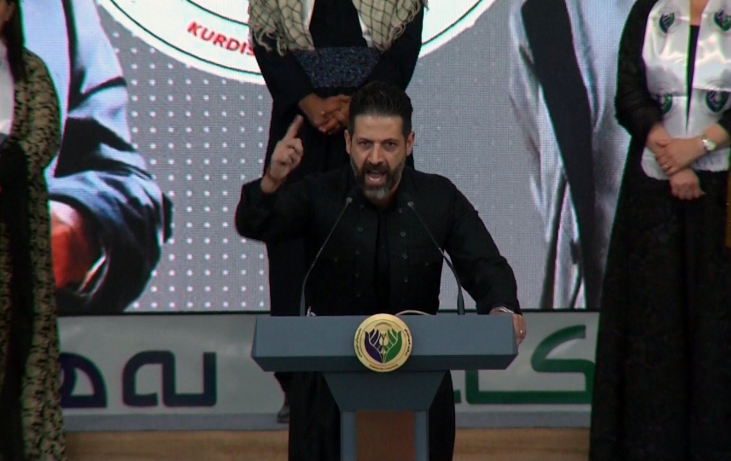 Head of the Kurdistan Coalition speaks at a campaign rally in Garmiyan on September 29, 2021. Photo: Kurdistan Coalition