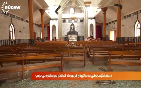 Inside Mar Gorgis Church stocks of missiles and improvised explosives are piled up apparently manufactured by the militants themselves who used the church as a shield against areal bombing.