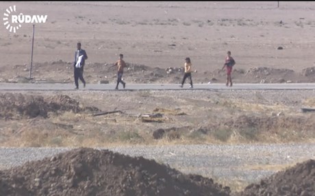 In images captured by Rudaw TV from the frontline in Bashiqa, east of Mosul, Peshmerga forces are seen receiving at least two families, including children.