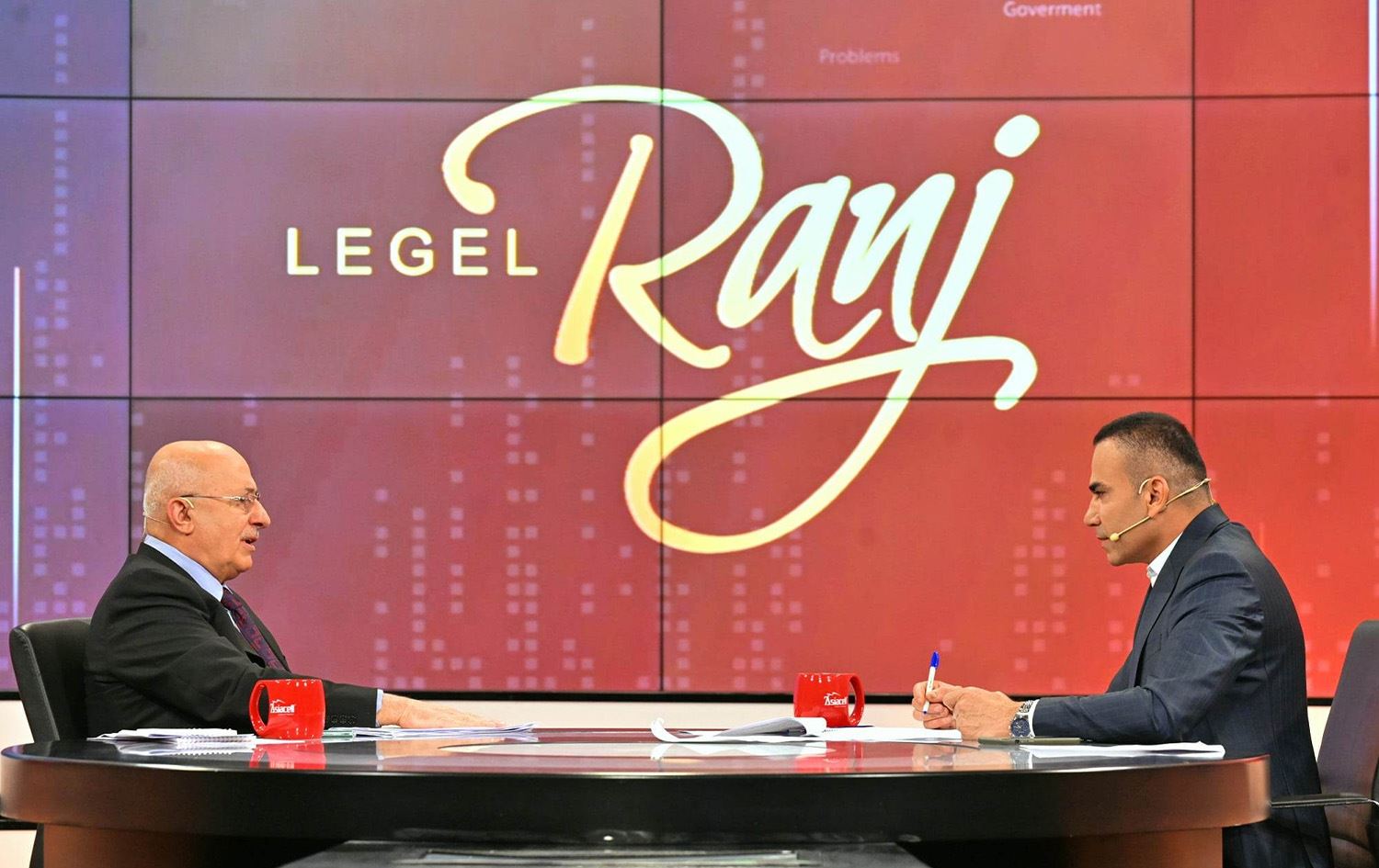 The Kurdistan Region Finance Minister Awat Sheikh Janab (left) speaking to Rudaw's Ranj Sangawi on April 30, 2023. Photo: Rudaw