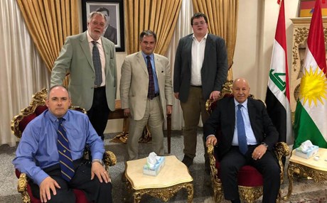 A delegation from Britain's All Party Parliamentary Group (APPG) on the Kurdistan Region in Iraq meets with top KRG officials. From left to right: MP Robert Halfon, APPG Secretary Gary Kent, MP Jack Lopresti, Matthew Dent, the parliamentary secretary to Lopresti, and KRG Interior Minister Karim Sinjari. Photo: APPG