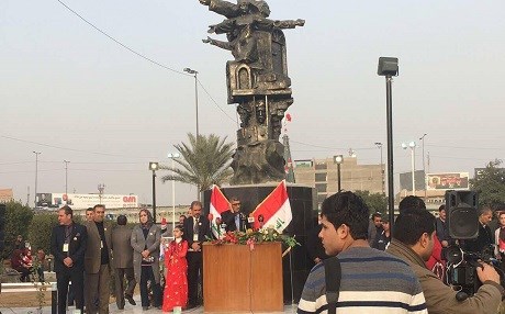 The monument was unveiled in a ceremony at Beirut Yard in the Iraqi capital of Baghdad. The authorities did not, however, allow the public to raise the Kurdish flag next to the Iraqi flag or sing the Kurdish national anthem during the ceremony.