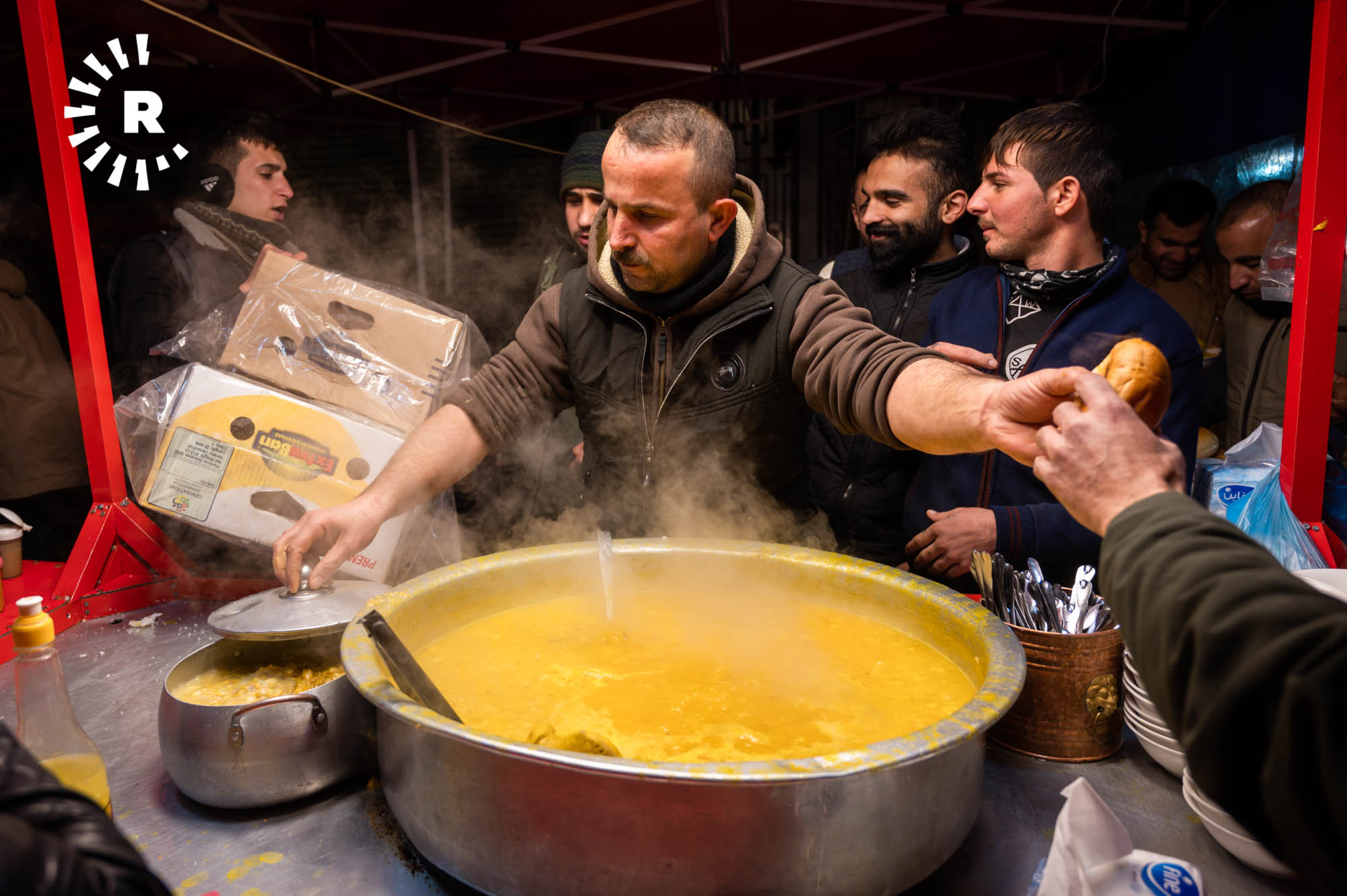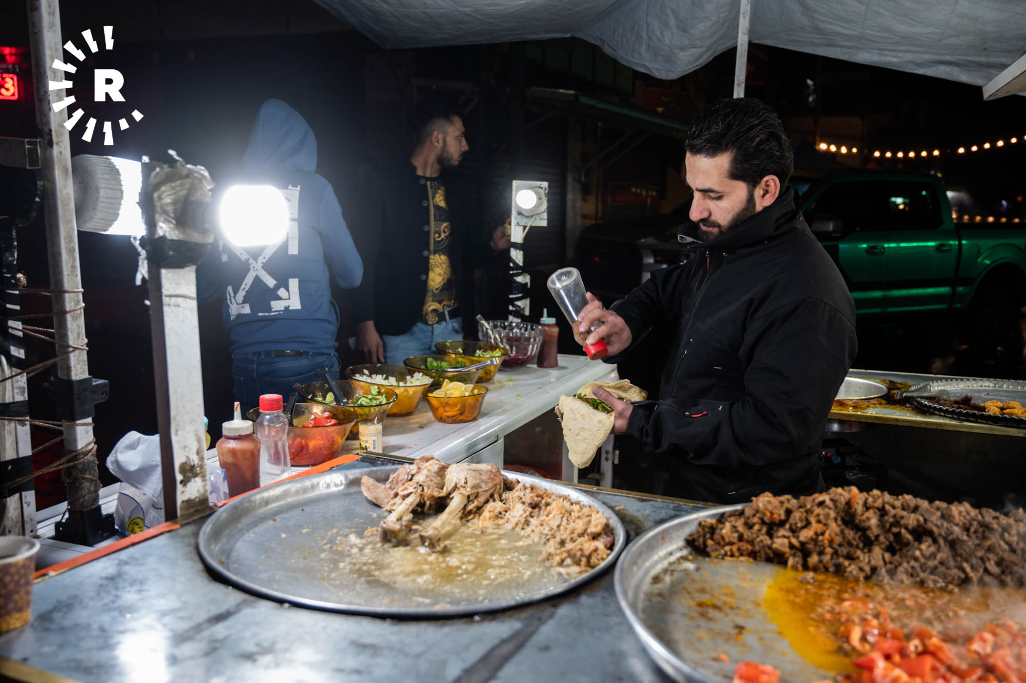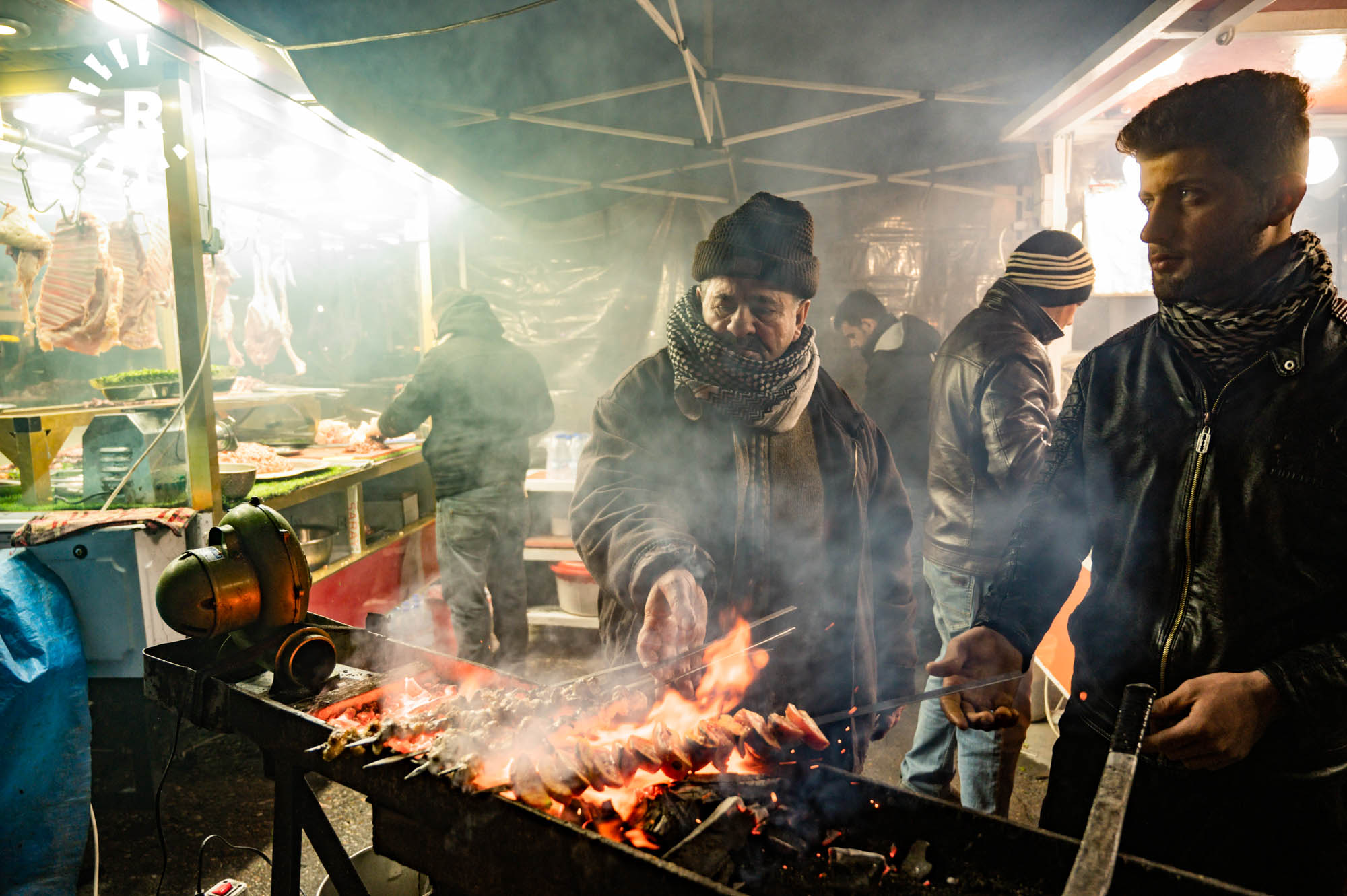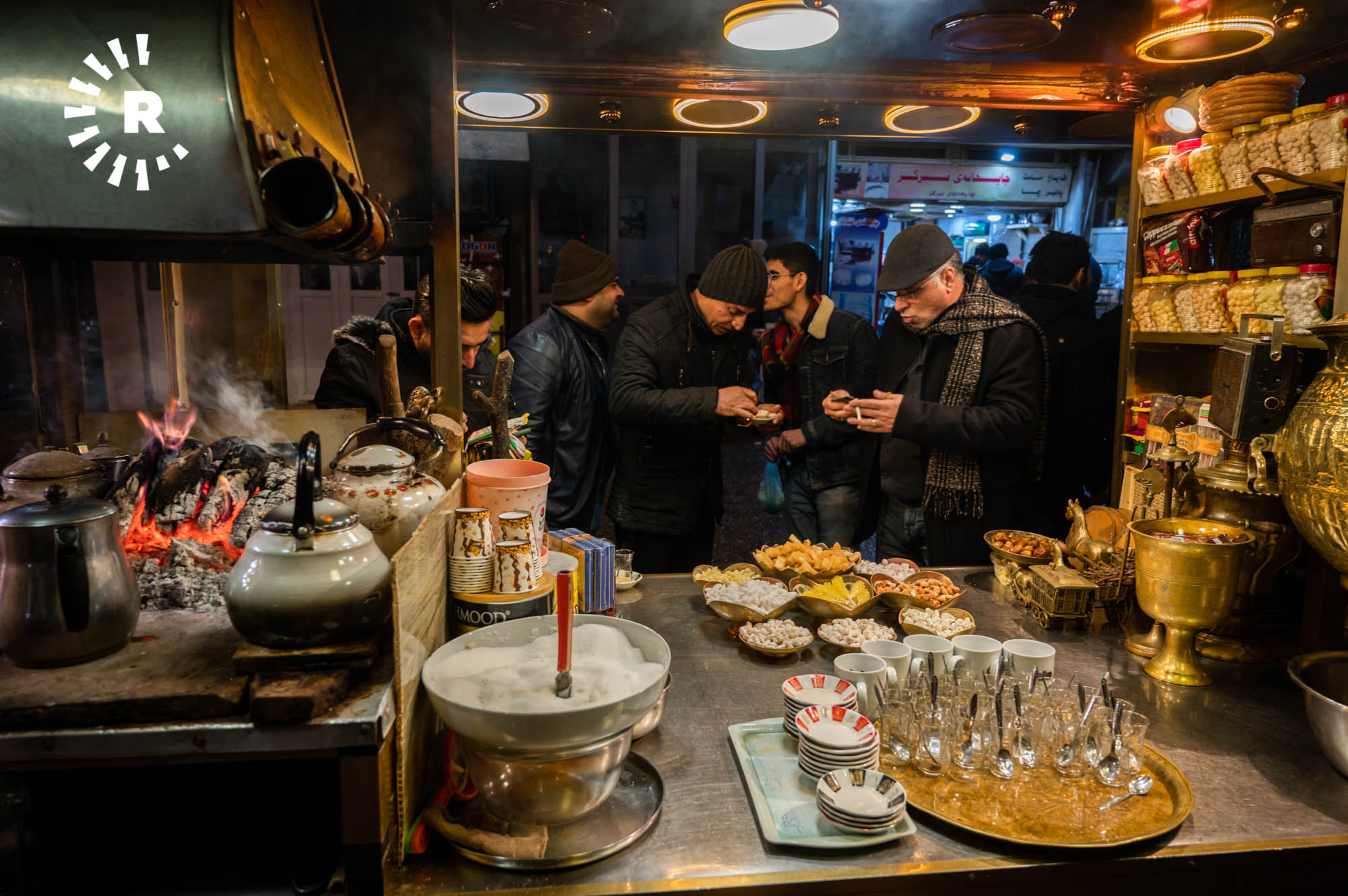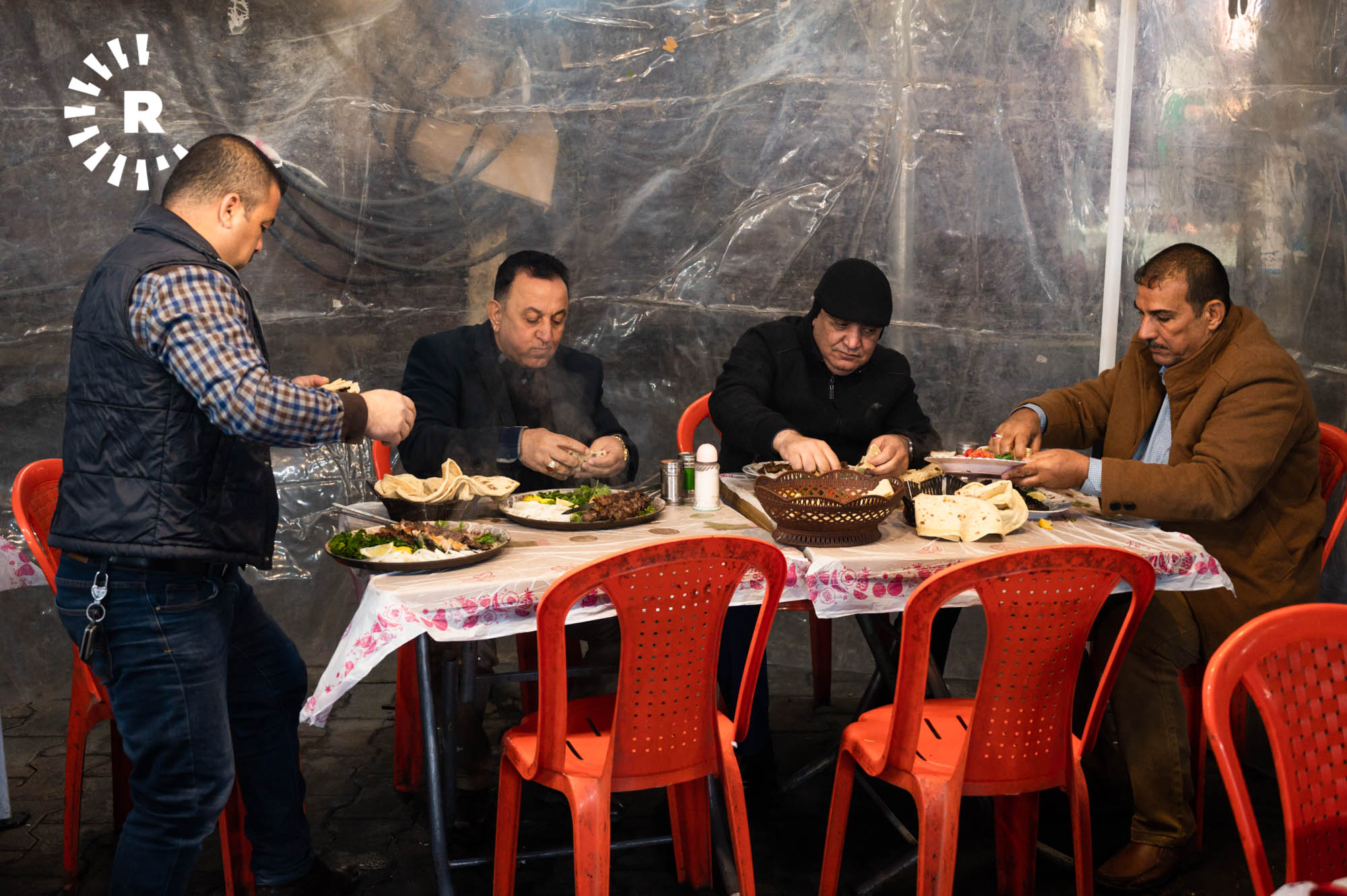 Some visitors, including tourists, simply stop by for a glass of chai and to soak up the atmosphere. Hunar Ali, who runs a shawarma kitchen, told Rudaw visitors can buy food throughout the night thanks to the busy street market.