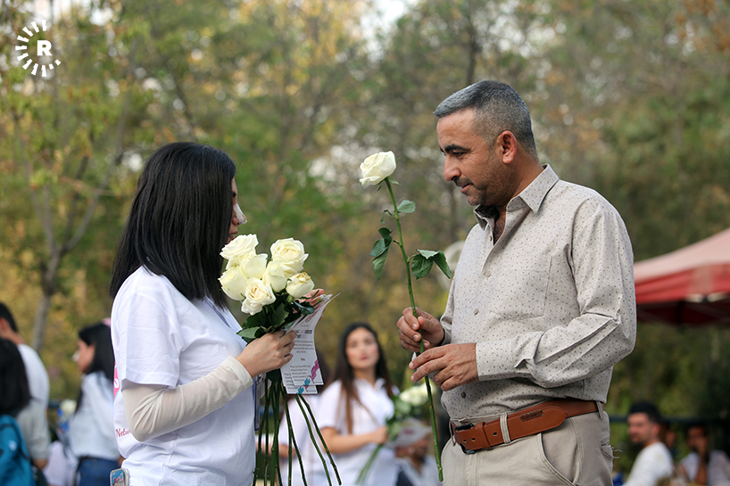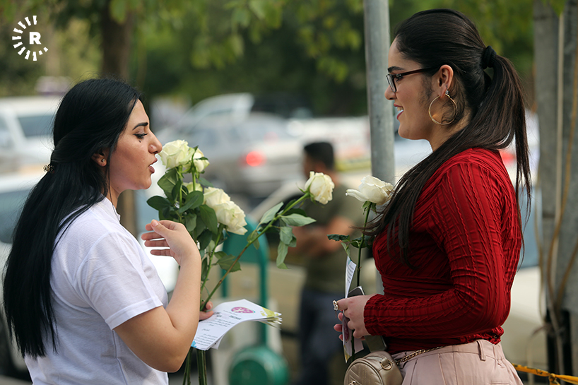 A group of young women volunteers sought to spread some good vibes on the streets of Sulaimani, breaking up the intensity of the Kurdistan Region parliament election campaign.