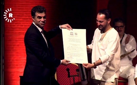 ERBIL, Kurdistan Region – Rudaw CEO Ako Mohammed was presented an official document recognizing Erbil Citadel as a UNESCO World Heritage Site on Thursday night by Iraqi musician Naseer Shamma, the headline act at the Daffodil Cities Concert.