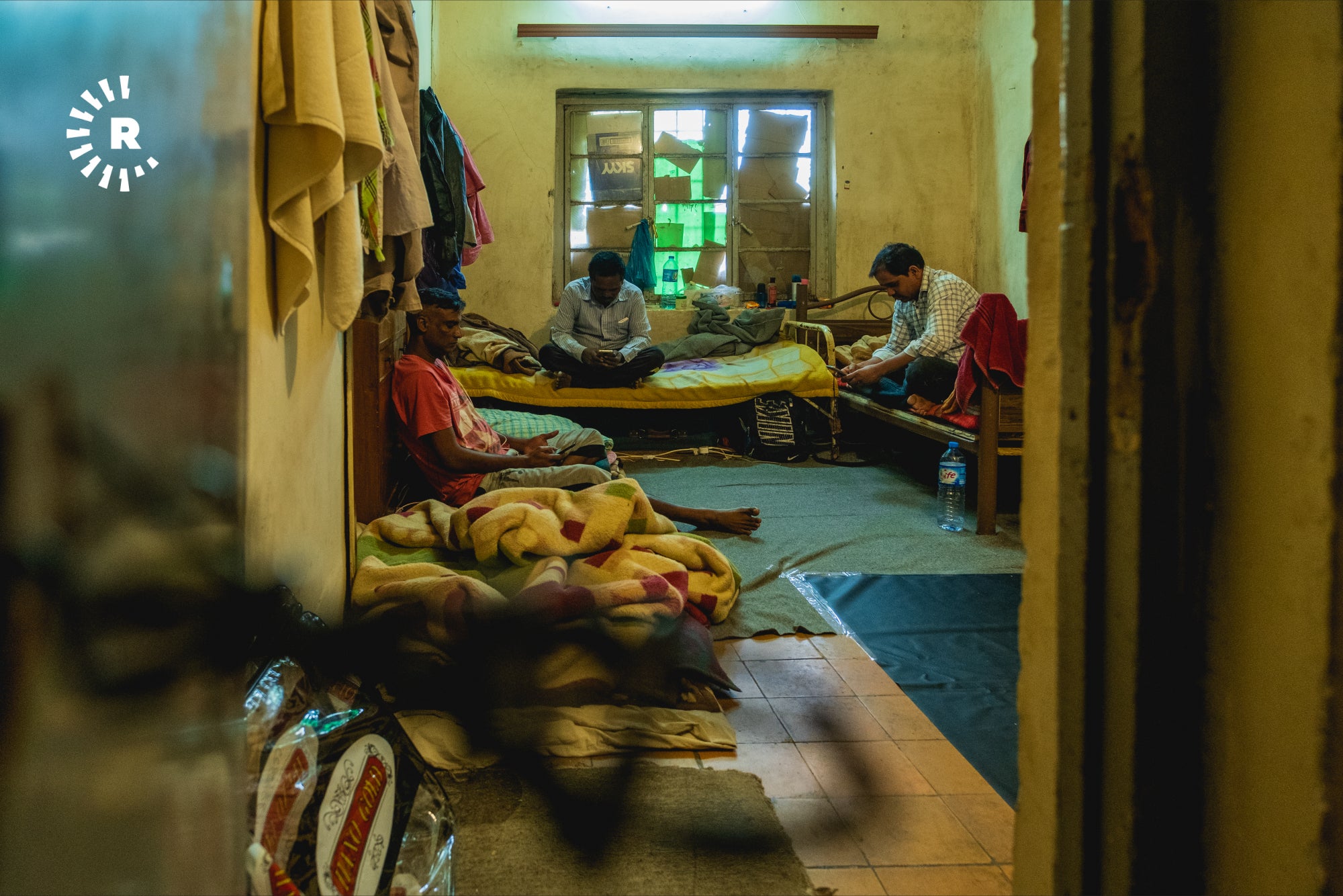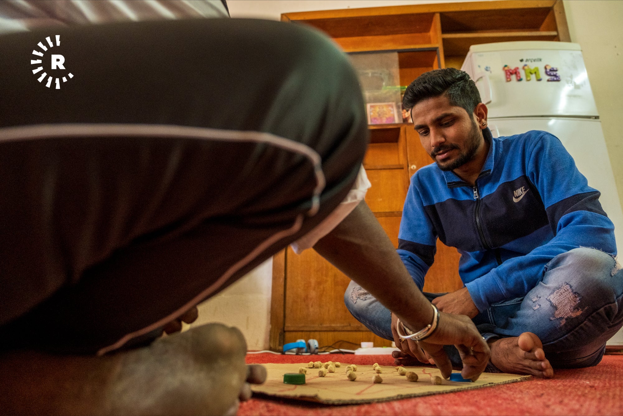 It is here that Kanaveni and the other men, all from India’s central-southern state of Telangana, share meals cooked on camping stoves, play boardgames fashioned from scrap card, and video chat with families who suddenly seem so much further away.