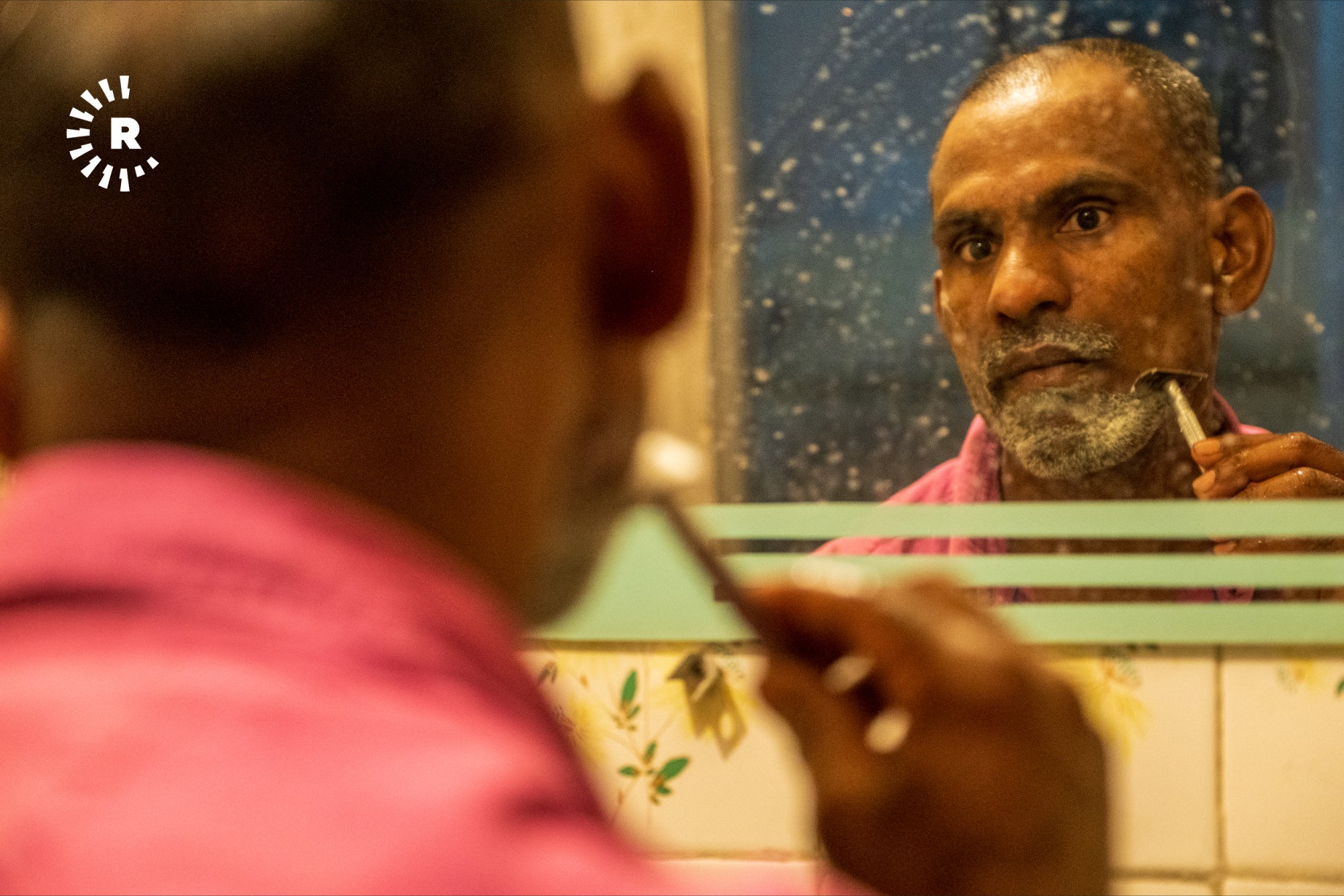 Even Parigemalla Bojanna, 40, who has been scraping by in Erbil for two years cleaning barbershops, had no contingency plan for prolonged unemployment. His calloused hands and feet seem too big for his skinny frame, sitting cross-legged on the floor of his crowded home.