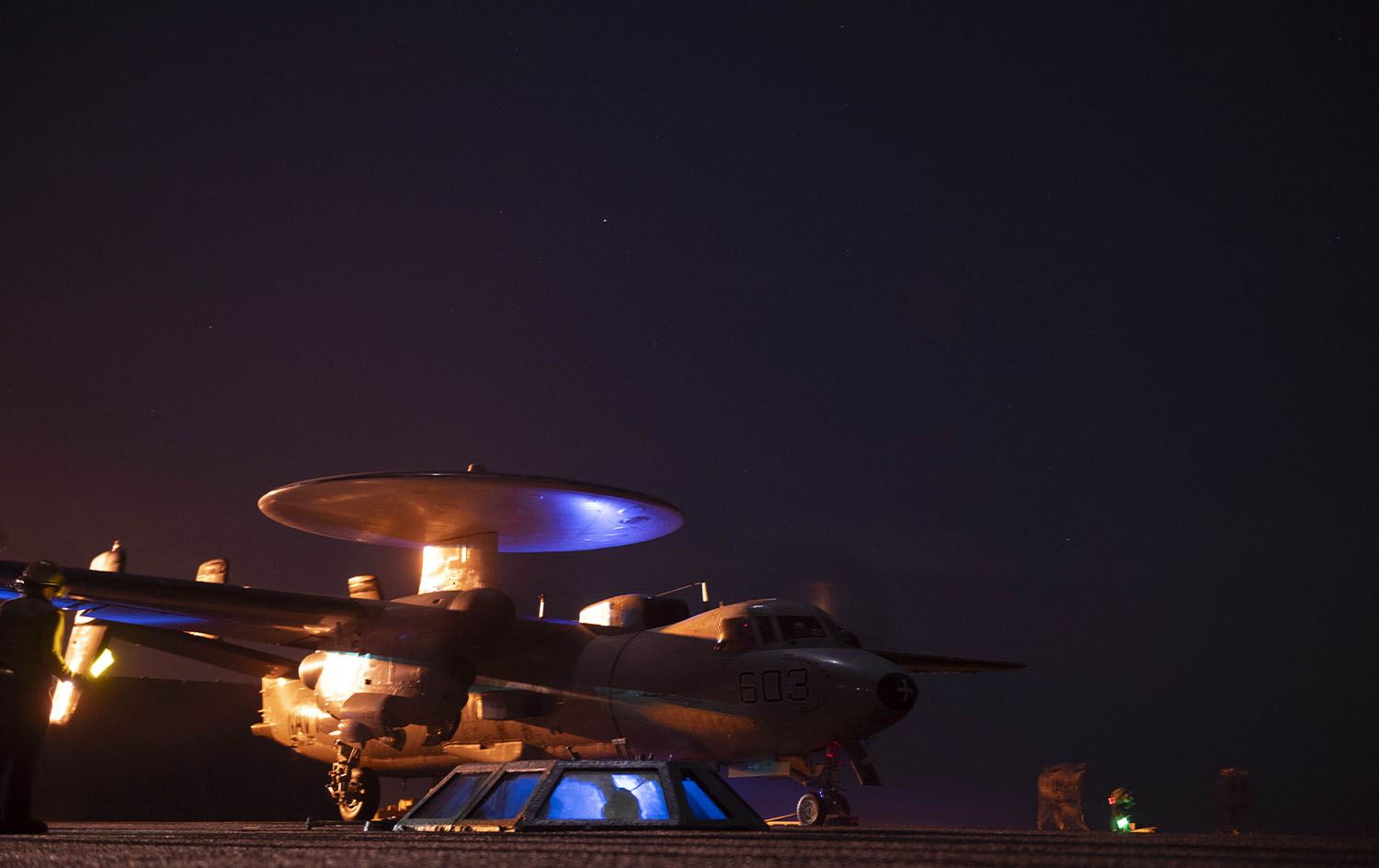 This handout picture released by the US Central Command Public Affairs and taken on January 22, 2024 shows flight operations from the USS Dwight D. Eisenhower (CVN 69) in response to increased Iranian-backed Houthi malign behavior in the Red Sea. Photo: Kaitlin Watt/US Central Command Public Affairs/AFP