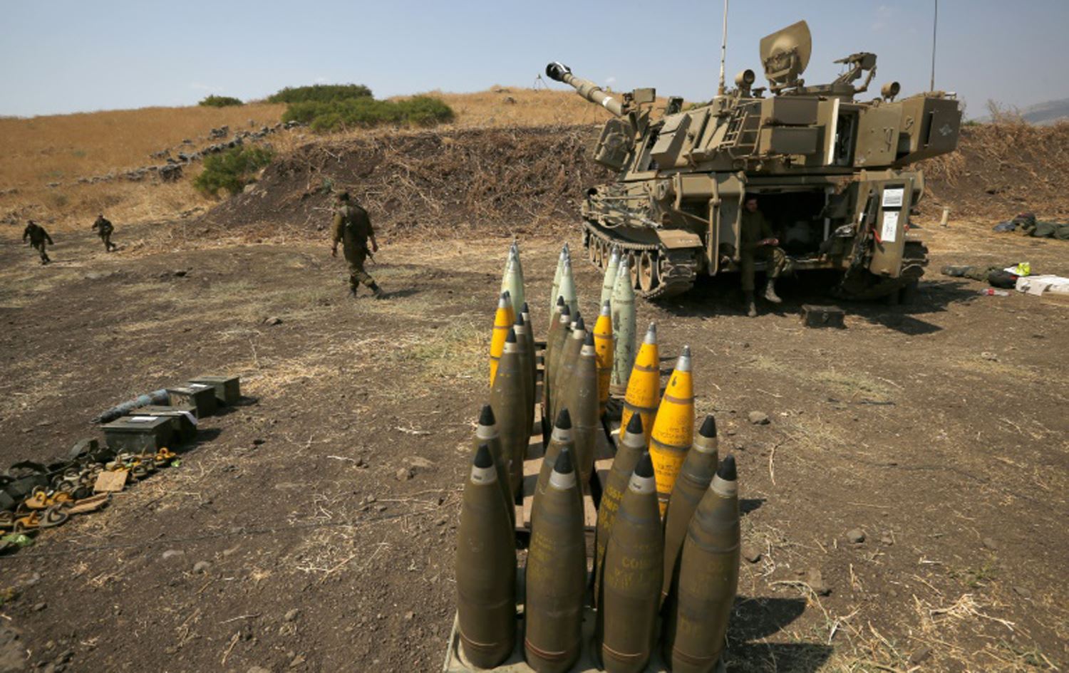 Artillery shells are lined up beside an Israeli self-propelled artillery gun near the Lebanese border. Photo: AFP / Jalaa Marey