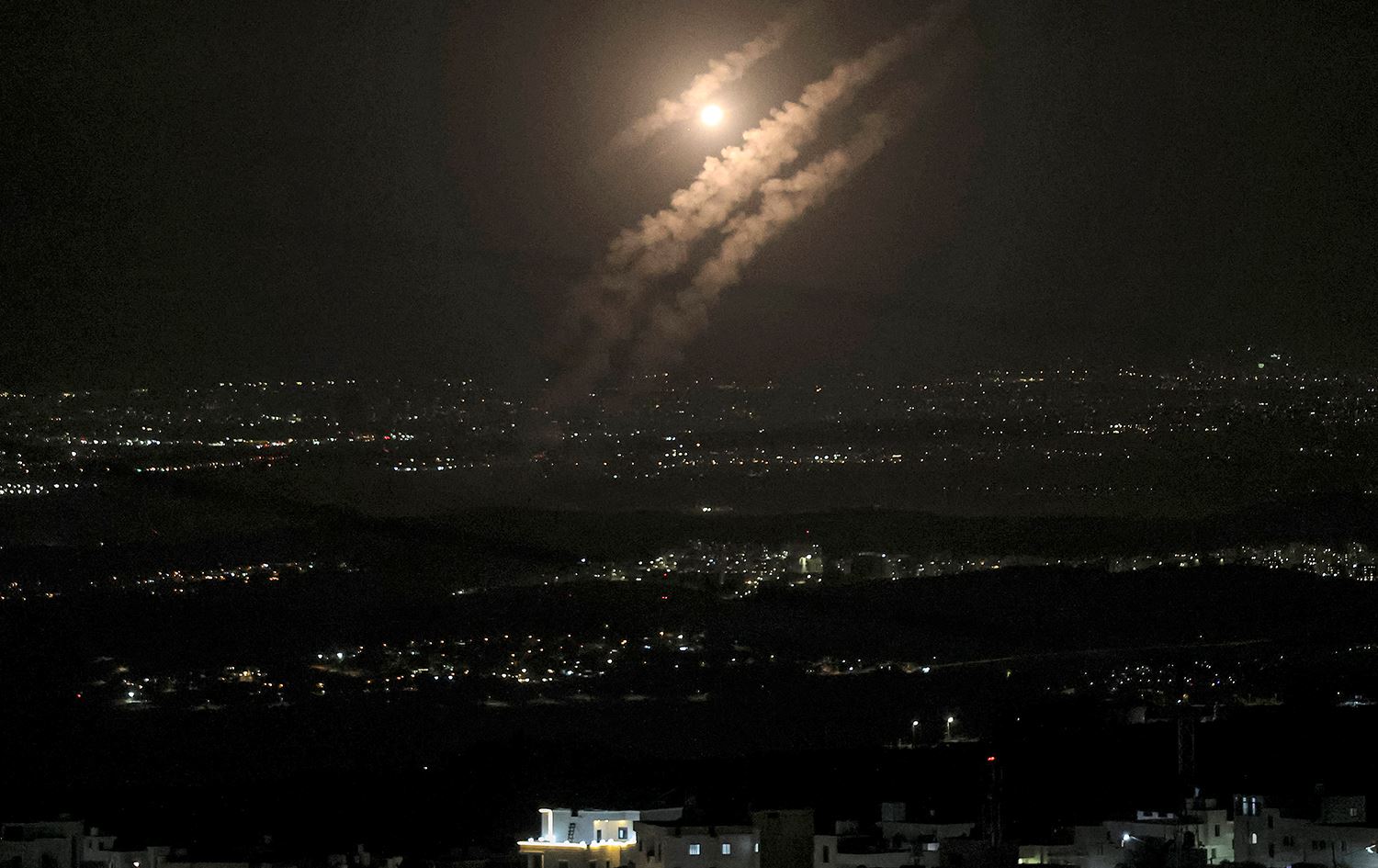 The West Bank city of Hebron shows projectiles above the city of Ashdod on October 1, 2024. Photo: Hazem Bader/AFP