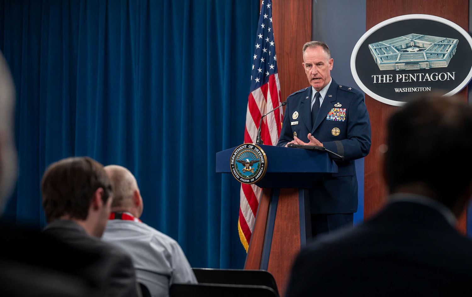 Pentagon Press Secretary U.S. Air Force Brigadier General Pat Ryder addresses members of the media during a briefing at the Pentagon, Washington, D.C., on October 31, 2023. Photo: Pentagon