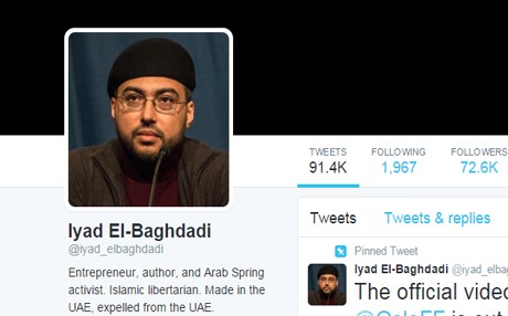 El-Baghdadi who calls himself the Arab Spring man has more than 72,000 followers on Twitter.