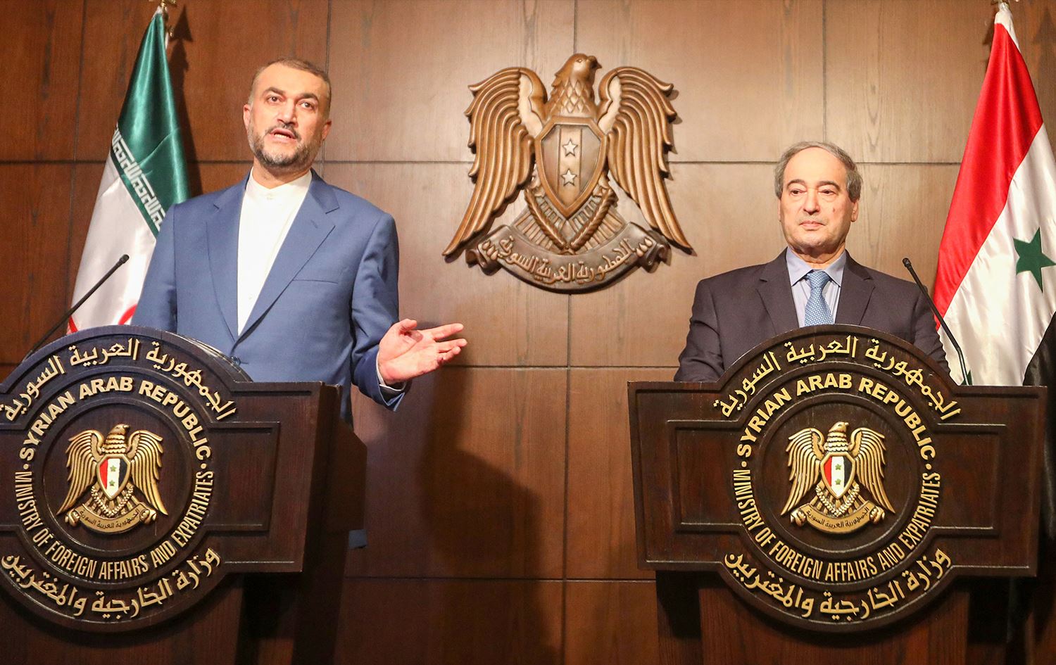 Iranian Foreign Minister Hossein Amir-Abdollahian during a press conference with his Syrian counterpart Faisal Mekdad in Damascus on July 2, 2022. Photo: Louai Beshara/AFP