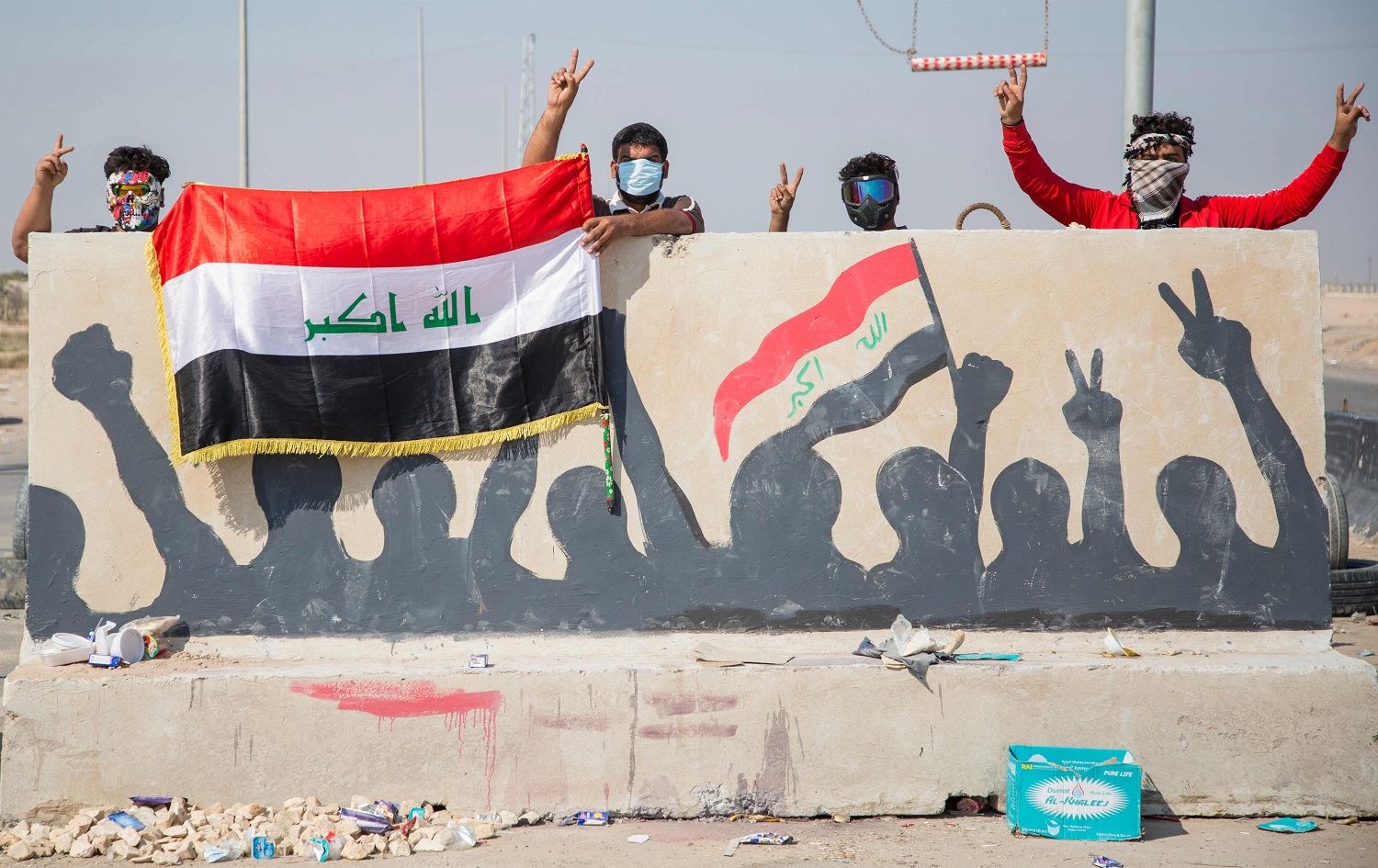 Iraqi protesters block the highway leading to Umm Qasr port during ongoing anti-government demonstrations in southern Iraq on November 3, 2019. Photo: AFP / Hussein Faleh /