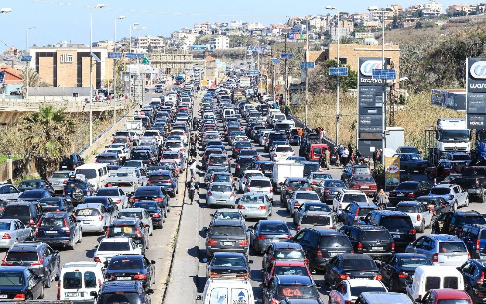 Traffic jam in Sidon, southern Lebanon, as residents flee their villages amid the Hezbollah-Israel escalation on March 2, 2026. Photo: AFP