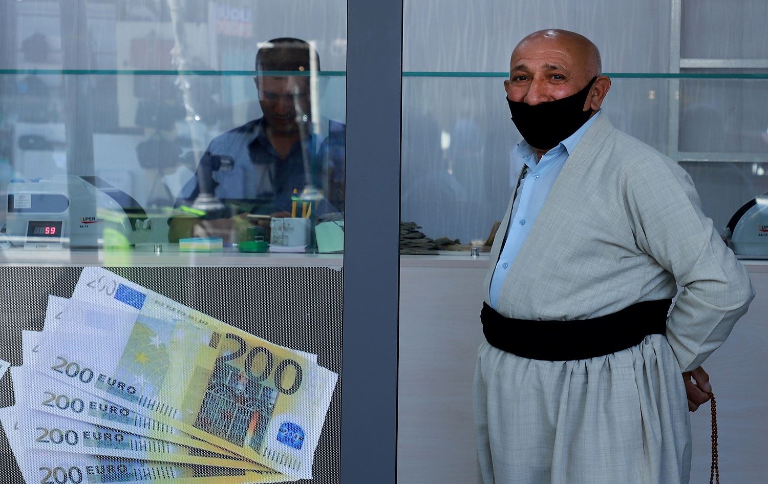 A man waits at a money exchange office in Sulaimaniyah city in the Kurdish autonomous region of northern Iraq on August 4, 2020. Photo: Shwan Mohammed / AFP
