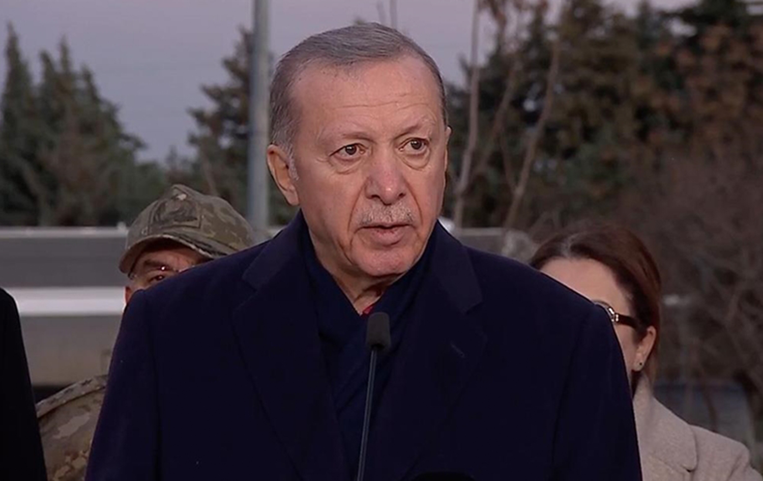 Turkish President Recep Tayyip Erdogan speaking from earthquake-hit Hatay province on February 8, 2023. Photo: AA