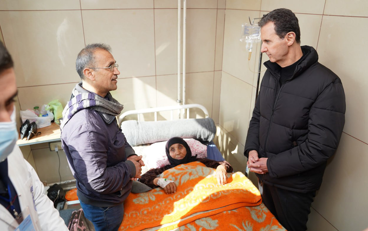 Syrian President Bashar al-Assad on Friday conducted a visit to the Aleppo University Hospital to check up on those injured as a result of the massive earthquake.