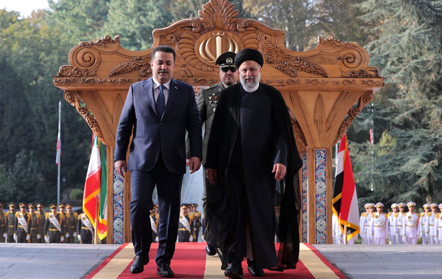 Iranian President Ebrahim Raisi (right) welcoming Iraq's Prime Minister Mohamed Shia al-Sudani (left) in the capital Tehran on November 6, 2023. Photo: Handout/Iranian Presidency/AFP