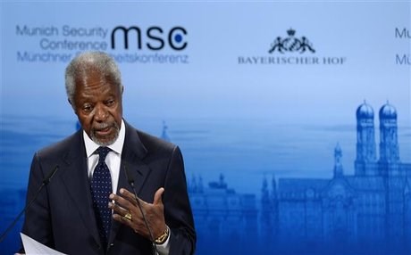 Turning to Syria, the former UN secretary general noted that Bashar al-Assad still remains in power, as the war to oust him soon goes into its fourth year.