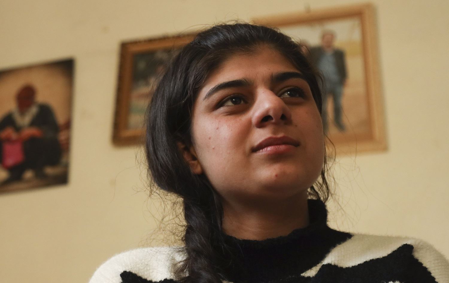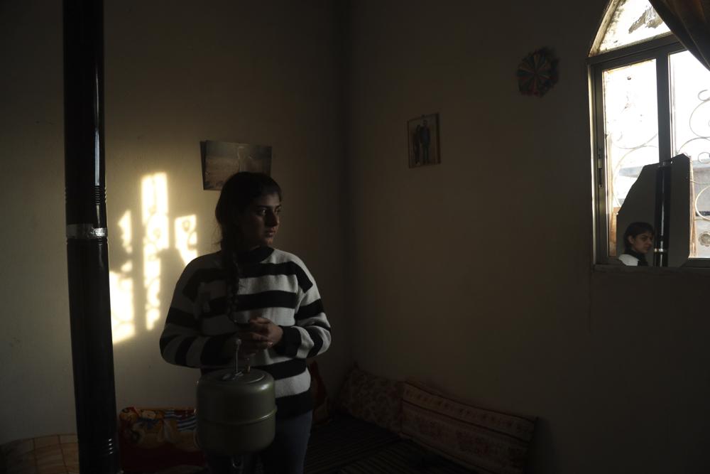 Roza Barakat poses for a portrait in a safe house in Hasaka, Syria, on February 6, 2022. Photo: Baderkhan Ahmad/AP