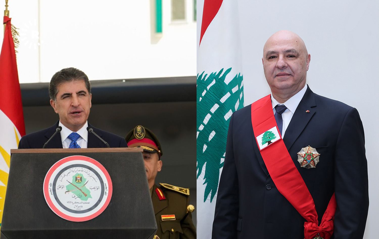 From left: Kurdistan Region President Nechirvan Barzani and Lebanese President Joseph Aoun. Photos: handout. Graphic: Rudaw