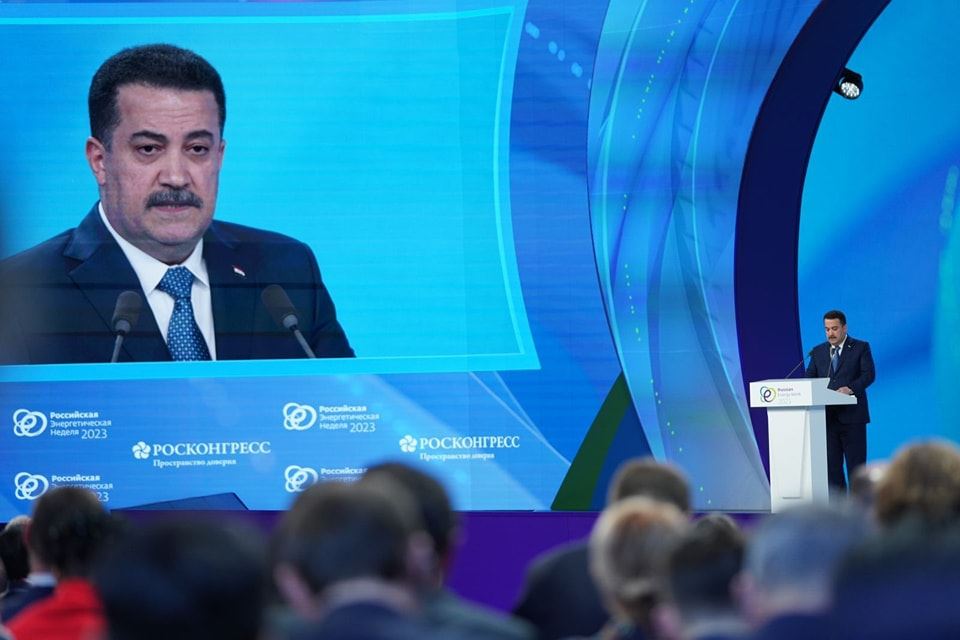 Iraq’s Prime Minister Mohammed Shia’ al-Sudani speaking at an energy conference in Moscow on October 11, 2023. Photo: Sudani's office