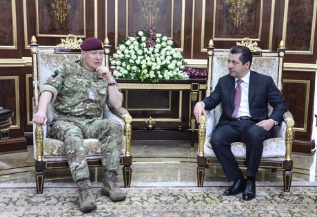 Head of the Kurdistan Region Security Council (KRSC) Masrour Barzani met with UK Defence Senior Adviser on the Middle East Lt. Gen. Sir John Lorimer on April 4.