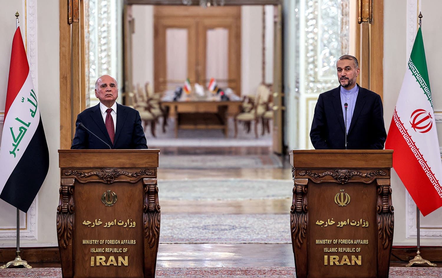 Iraqi Foreign Minister Fuad Hussein (left) held a press conference with his Iranian counterpart Hossein Amir-Abdollahian after their meeting in Tehran on April 14, 2022. Photo: Atta Kenare/AFP