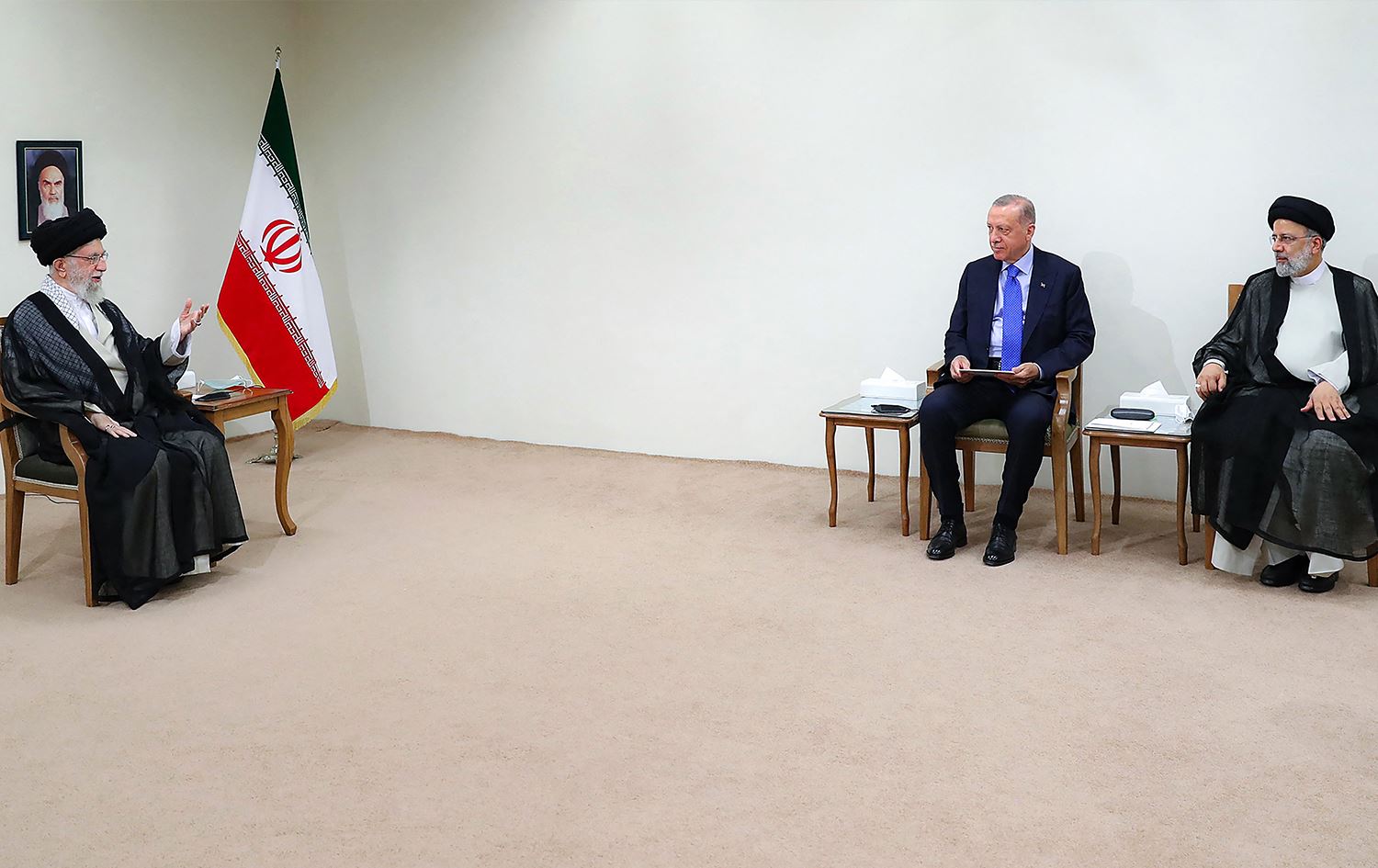 This handout picture provided by the office of Iran's Supreme Leader Ayatollah Ali Khamenei shows him meeting with Turkey's President Recep Tayyip Erdogan alongside Iran's President Ebrahim Raisi (R) in Tehran on July 19, 2022. Photo: Khamenei’s office/AFP